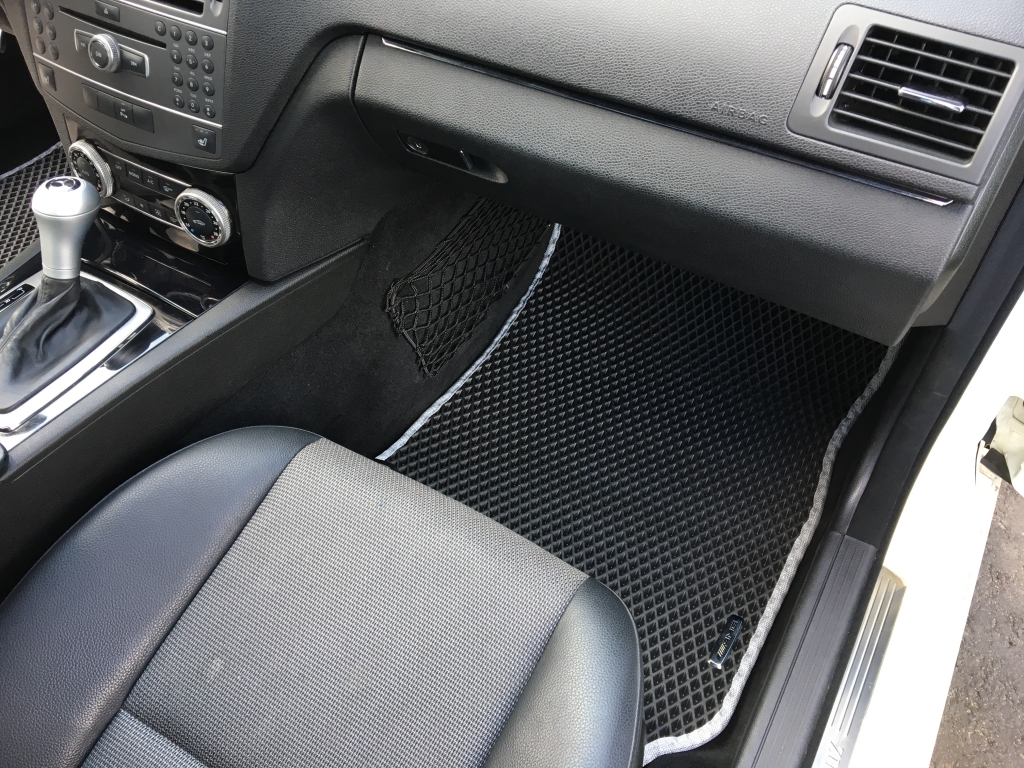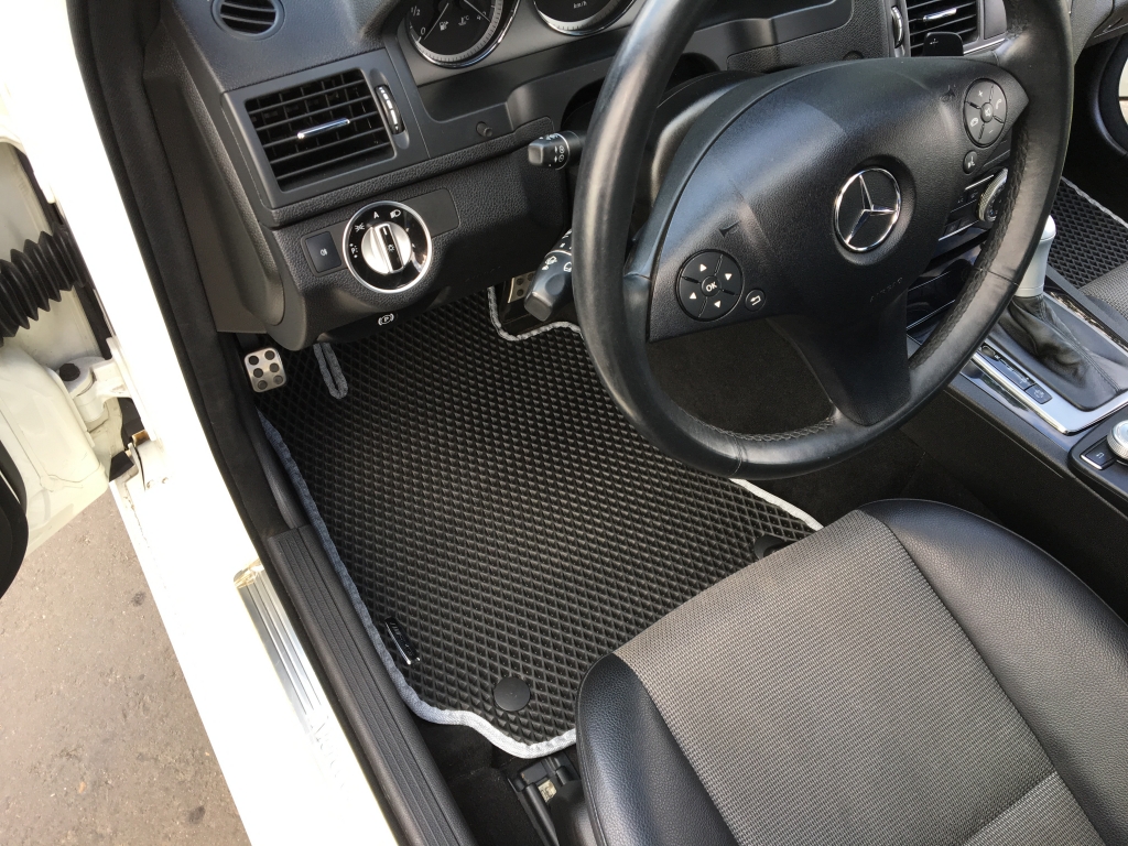 EVA коврики для автомобиля Mercedes С-класс W204 2007 - 2011 — это лучший выбор. Покрытие из этого ячеистого полимерного материала покупают сотни автолюбителей. Коврики из ЭВА долговечные, прочные, красивые. Сроки службы изделий — от 5 лет. Они не выделяют вредных веществ, ничем не пахнут. Коврики защищают пол автомобиля от грязи и влаги, а салон — от лишней пыли.